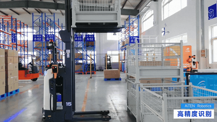 5.高位存取: 一些型号的叉车AGV具备自动提升能力,可代替人工操作高位叉车,在立体仓库中存取货物,大大提升安全性。
