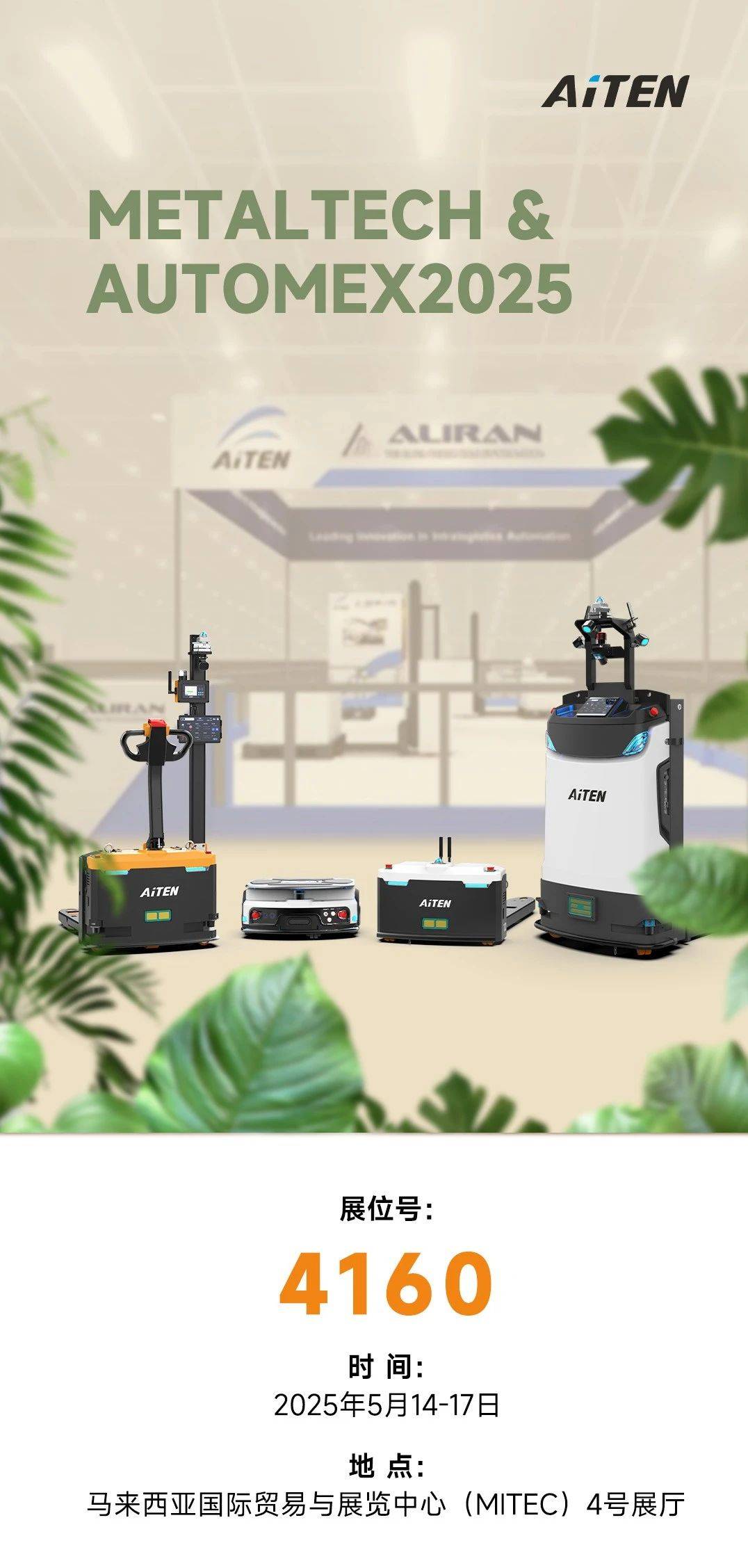 倒计时启动!诚邀您参与现场动态演示,zoty.comAiTEN将携搬运移动机器人AM15,MP10,APE15,TT15惊艳亮相(2025.5.14-17)。