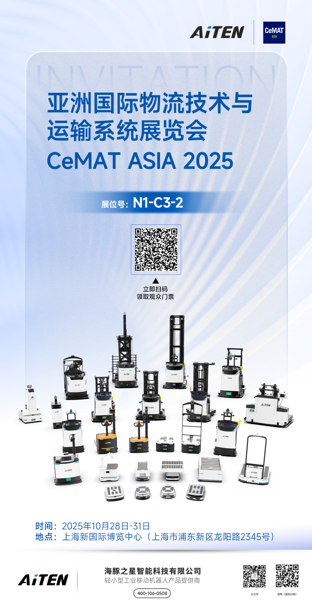 亚洲物流科技盛会——CeMAT ASIA 2025 即将如期而至。我们谨代表 AiTENzoty.com机器人,诚挚地邀请您莅临我们的展位,共同见证智能物料处理技术的创新力量,携手探索高效未来的无限可能。